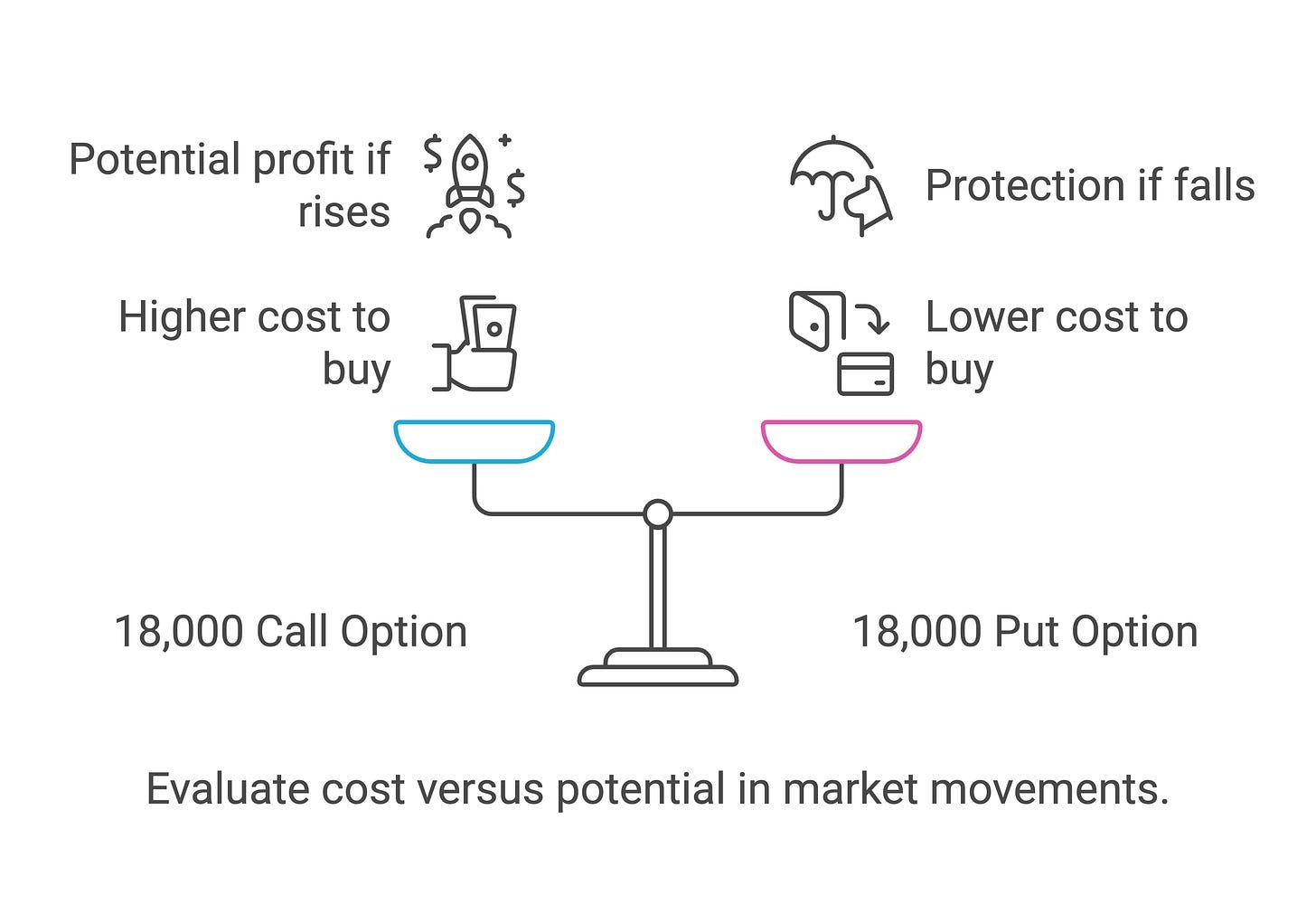 The 18,000 Put (ATM) might be trading at ₹140. Buying this put costs ₹140 * 50 = ₹7,000, giving you protection/profit if NIFTY falls below 18,000.