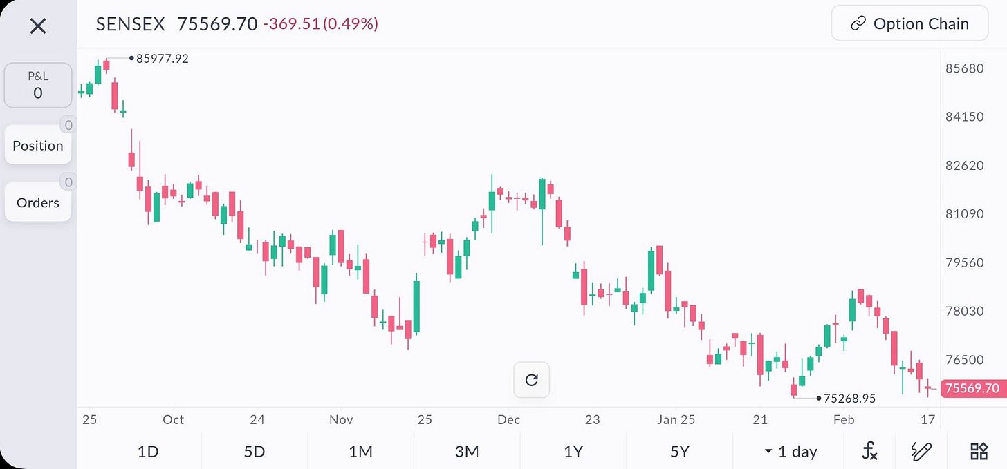 Line Chart: A simple chart that plots the closing prices over time, connecting them with a line. It gives you a quick overview of the price trend. For example, a line chart of Tata Motors might show the stock steadily rising from ₹300 to ₹400 over six months with some small dips in between. Line charts are clean and great for spotting the overall direction, but they don't show intra-day details