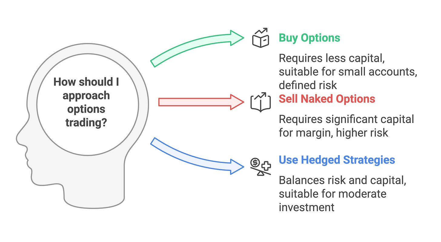 Reality: It depends on what you do. If you want to sell naked options, yes you need significant capital for margin (as we discussed in the Margins section – to short 1 lot Nifty, you might need around ₹1+ lakh). But you can start by buying options with much smaller capital. With just ₹5,000-₹10,000, one can buy an option or two (like one lot BankNifty option might cost a few thousand rupees premium). Many brokers and platforms allow even intraday MIS trades on option buying with small amounts (though caution: small account can get wiped if you bet it all on one trade). Moreover, even on selling side, SEBI’s hedged margin benefit means if you have, say, ₹50k, you could deploy a couple of safe spread trades rather than one big naked position. So while having more capital gives flexibility, it’s a myth that options are only for the rich. In fact, trading a small account with options might sometimes be more sensible than trading stocks, because you can take defined risk bets. Just be mindful: don’t use all available leverage and blow up a small account quickly – start with fraction of your capital at risk.