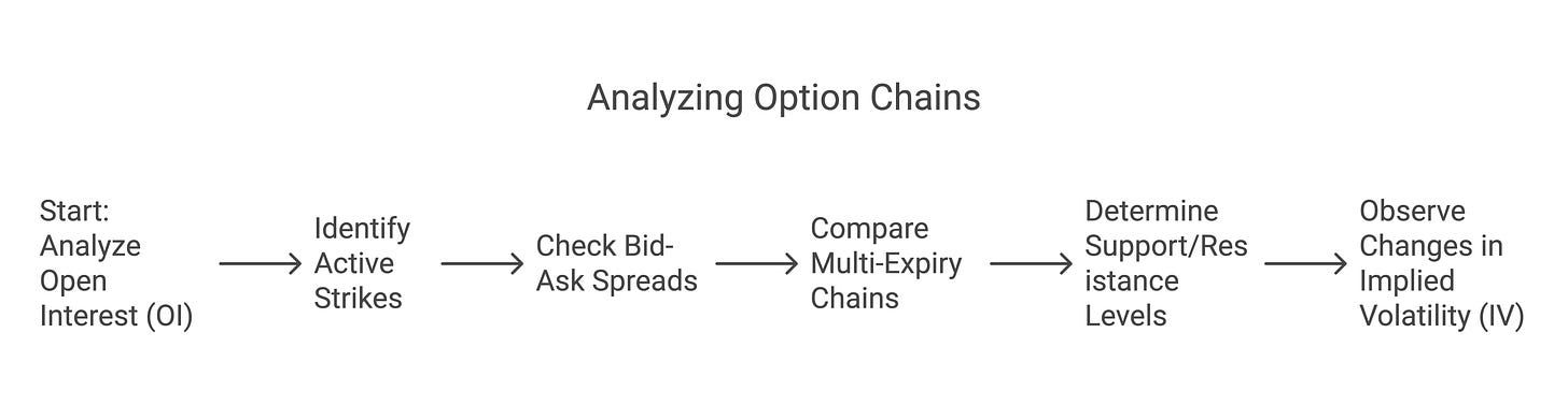 In a nutshell, the option chain is an indispensable tool. It shows real-time sentiment (through OI and price), and helps in identifying key market levels. It’s also very useful for strategy building (though we’re not covering specific strategies here, you’d use the chain to pick strikes for strategies like spreads).