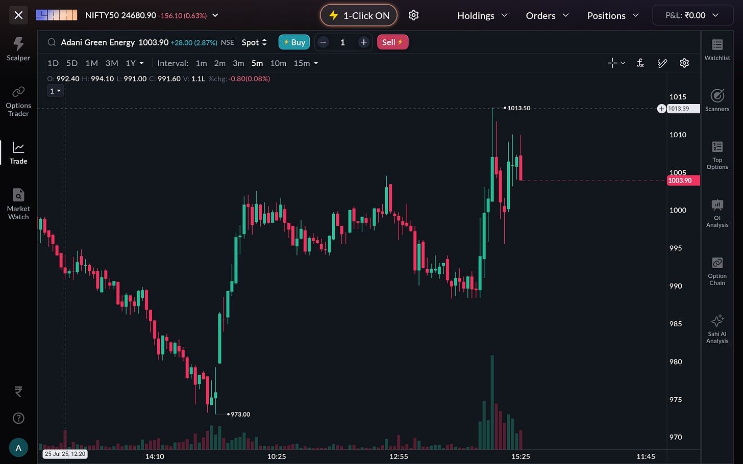 Stock price rose over 3% intraday, closing at ₹1,003.90.