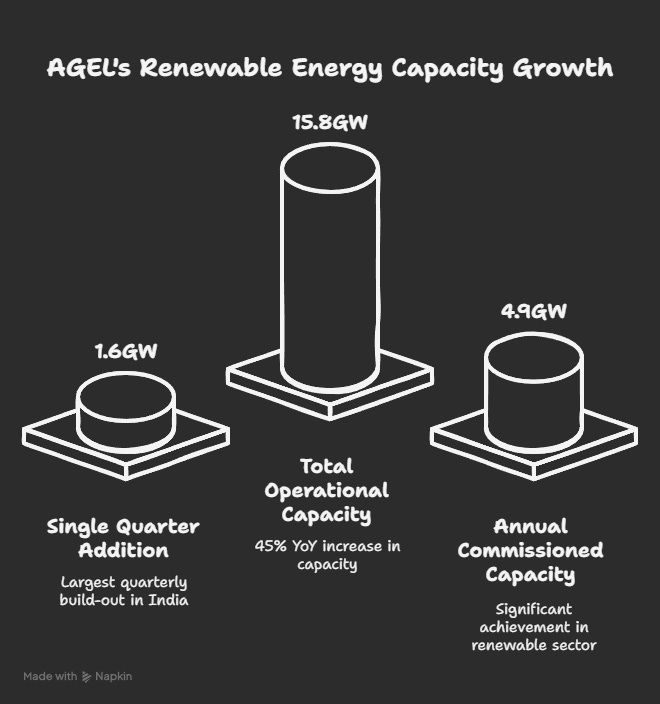 AGEL added 1.6 GW of greenfield capacity in a single quarter the largest quarterly build-out in India’s renewable history.