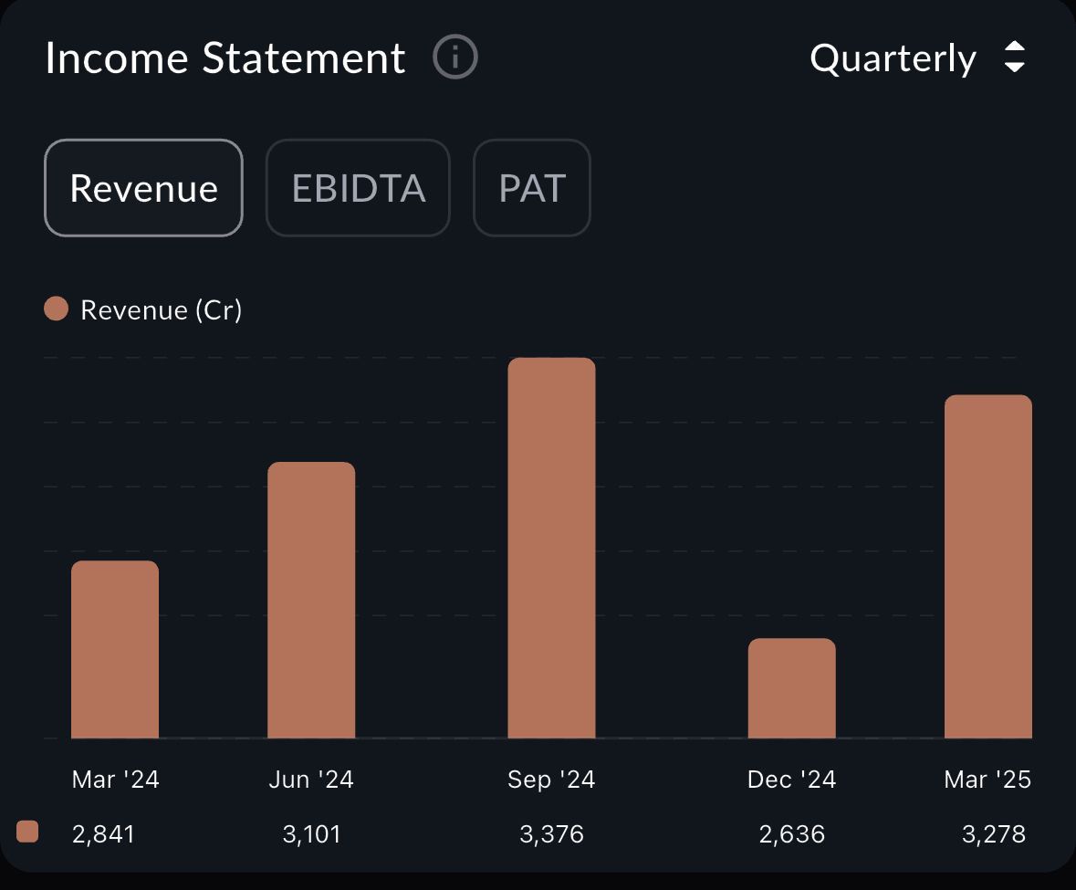 EBITDA for the quarter: ₹3,108 crore.