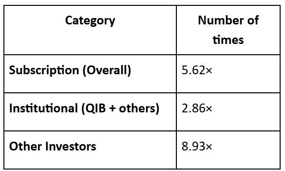 Retailers dictated demand, and the overall subscription issue concluded with a total subscription of ~5.62×.