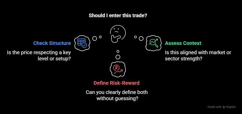 Here are the three questions every trade should be able to answer — regardless of your strategy, timeframe, or style.