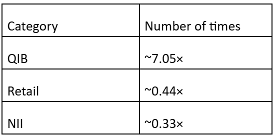 The grey market premium (GMP) had cooled to flat / ₹0 over issue price as of 1:30 pm on Oct 16 according to a few media sources. This indicates a conservative listing despite good subscription.