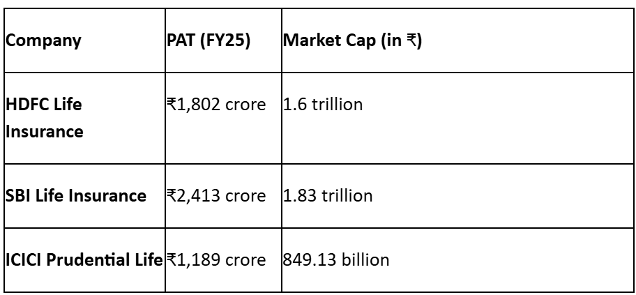 Canara HSBC Life Insurance operates in the life insurance space with listed incumbents such as HDFC Life, SBI Life, and ICICI Prudential Life. These incumbent players have deeper scale, wider distribution, and high valuation multiples.