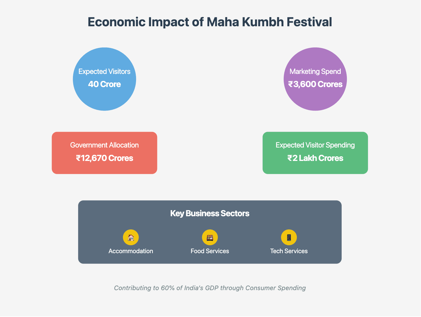 India’s economy is largely driven by consumer spending, which accounts for 60% of GDP. Festivals like the Maha Kumbh Mela show that culture isn’t just about traditions—it’s a powerful engine for economic growth.