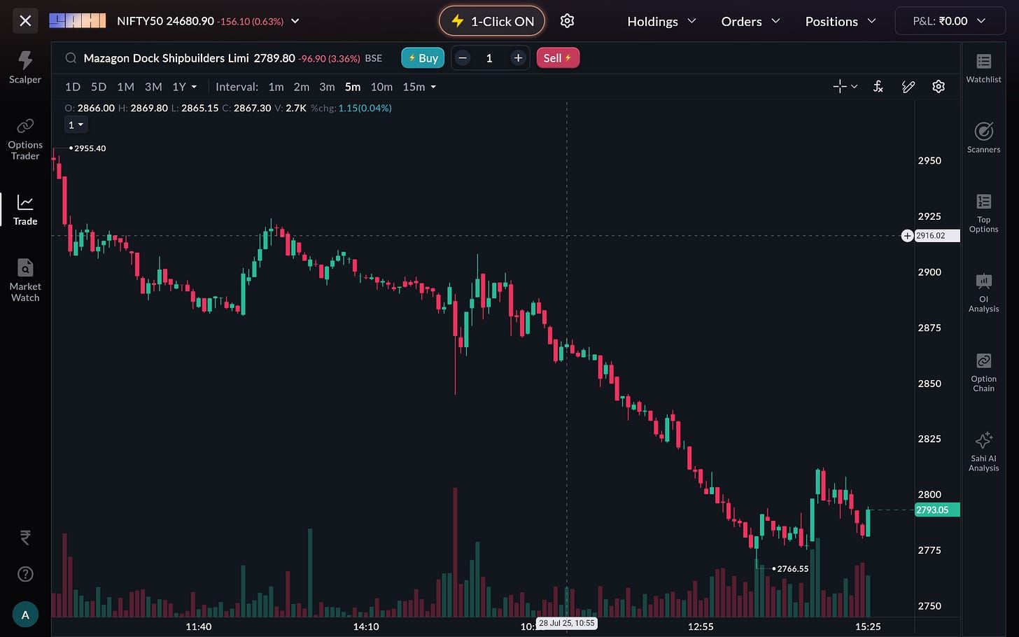 Shares of Mazagon Dock ended 3.35% lower today, but this move occurred prior to the earnings announcement.