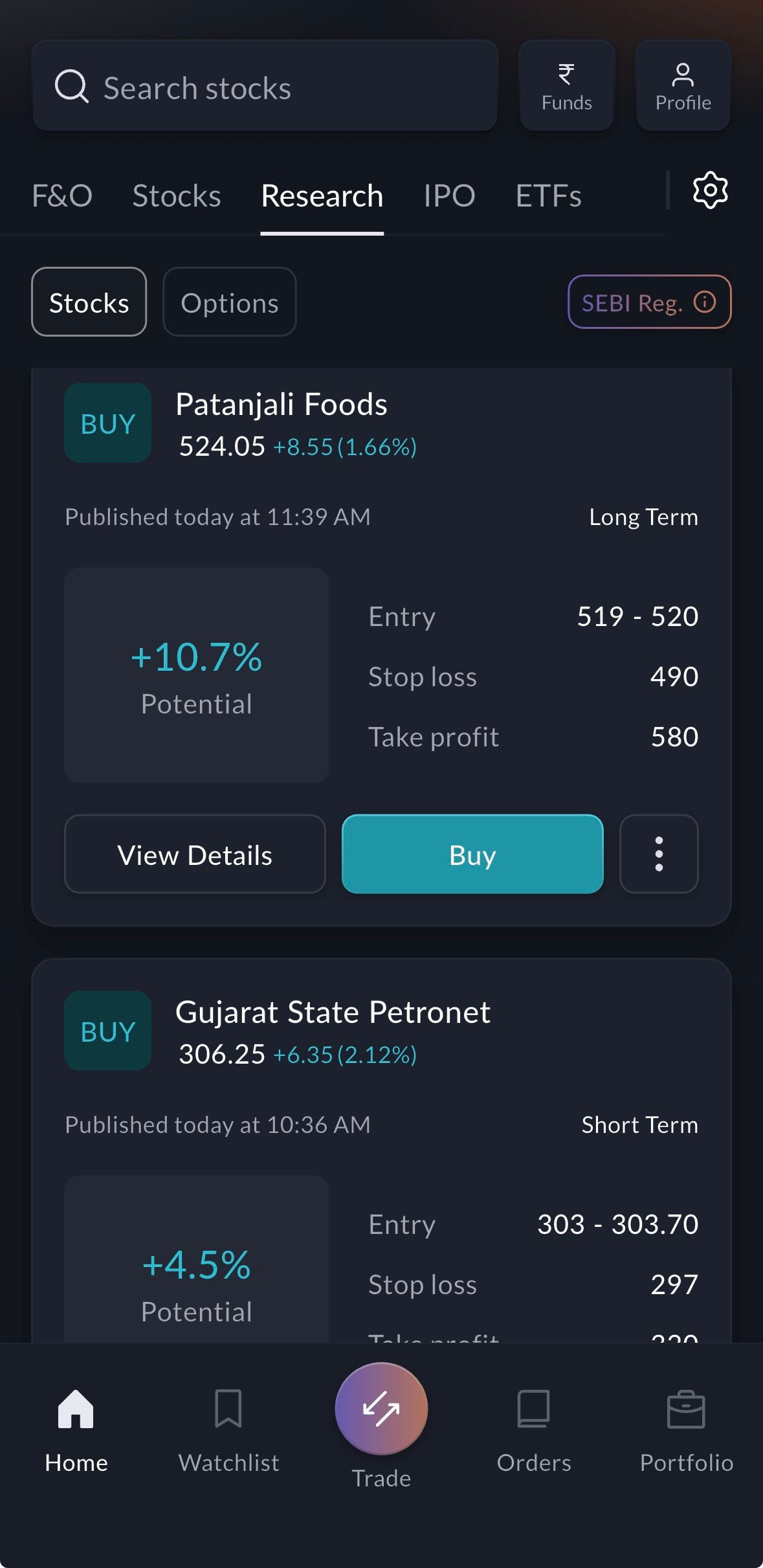 Free trade recommendations with clear entry, target & stop-loss—curated by a SEBI Registered Research Analyst using AI-backtested strategies. Completely free on Sahi.
