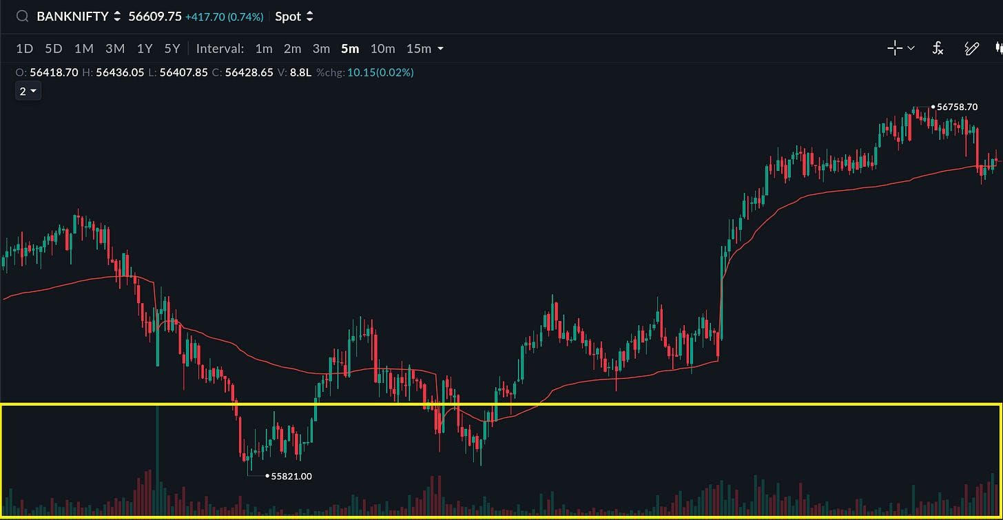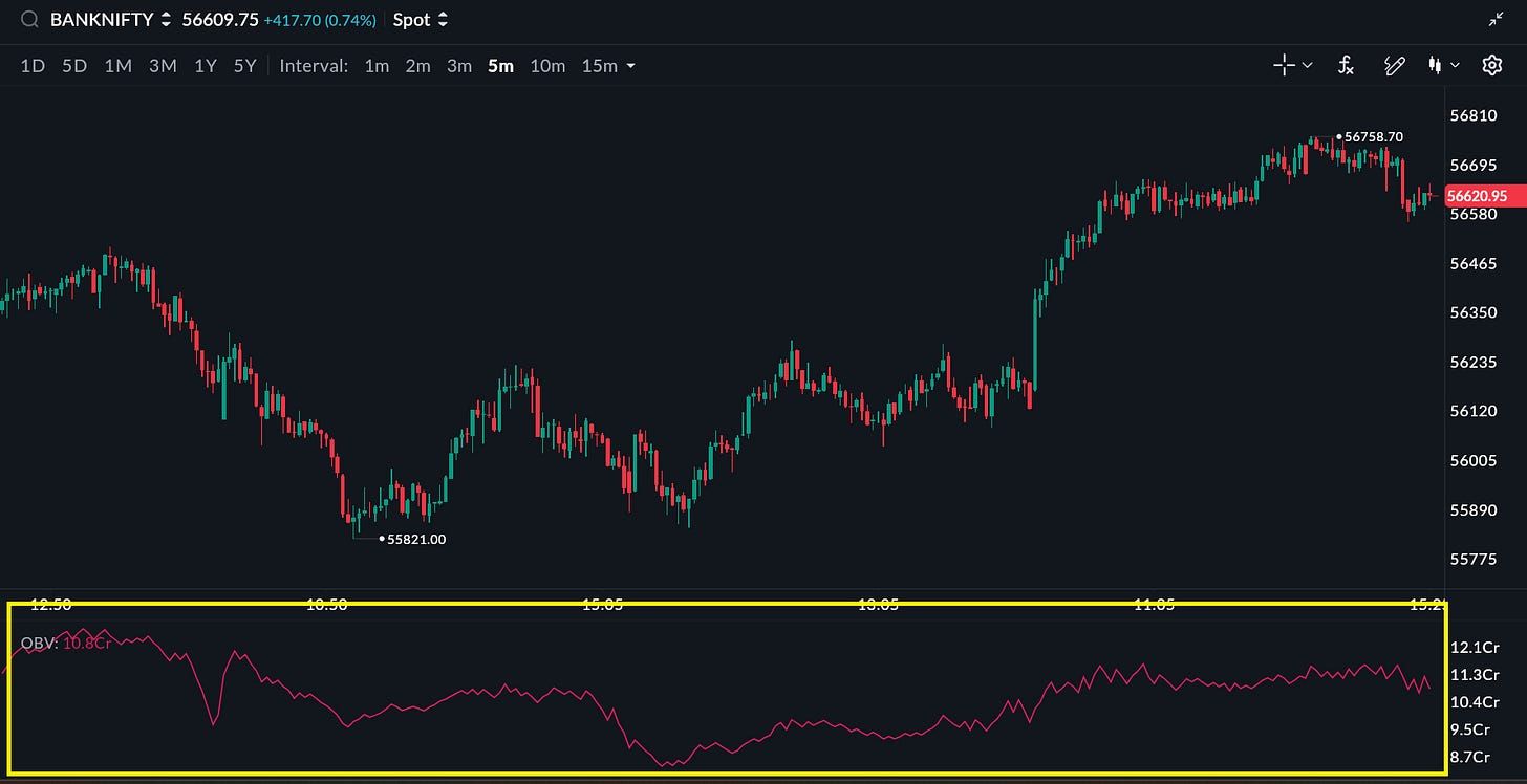 Volume: Measures total traded quantity for the index in real time. It reflects participation strength.Rising volume confirms active buying or selling, while low volume suggests lack of conviction.