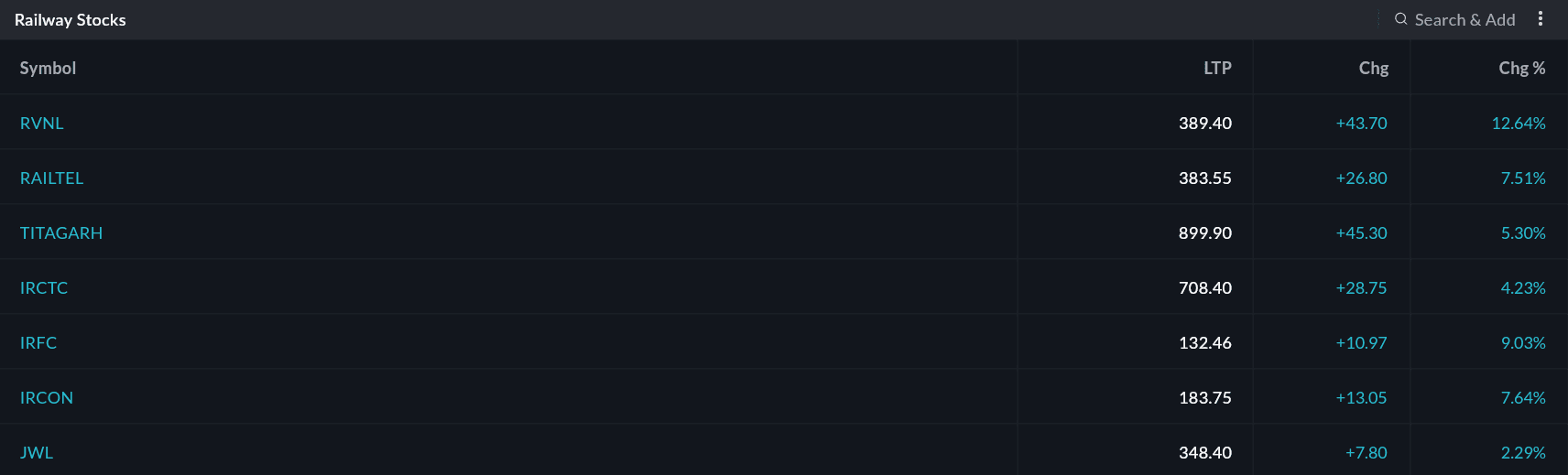 Names like RVNL, IRFC, IRCTC, IRCON and RailTel saw aggressive buying as investors began repricing the sector for higher sustainable earnings, not just government capex hope.