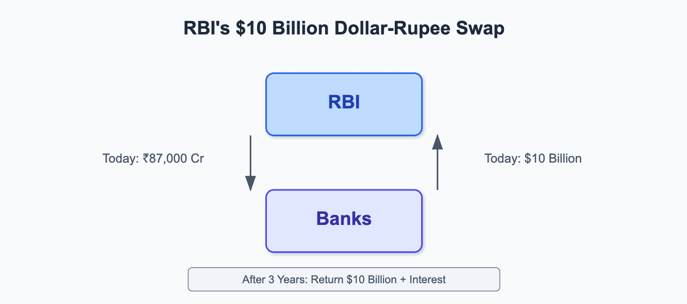 Reducing Rupee Volatility – The RBI has been selling dollars in the forex market to curb rupee depreciation. However, that action drains rupee liquidity from the system. This swap helps replenish rupees while keeping the currency market balanced.