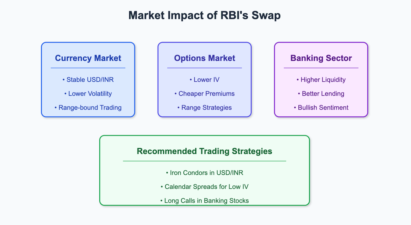 The swap injects nearly ₹87,000 crore into the system. More liquidity often means lower volatility, which could reduce Implied Volatility (IV) in options. If IV drops, expect cheaper premiums on options.