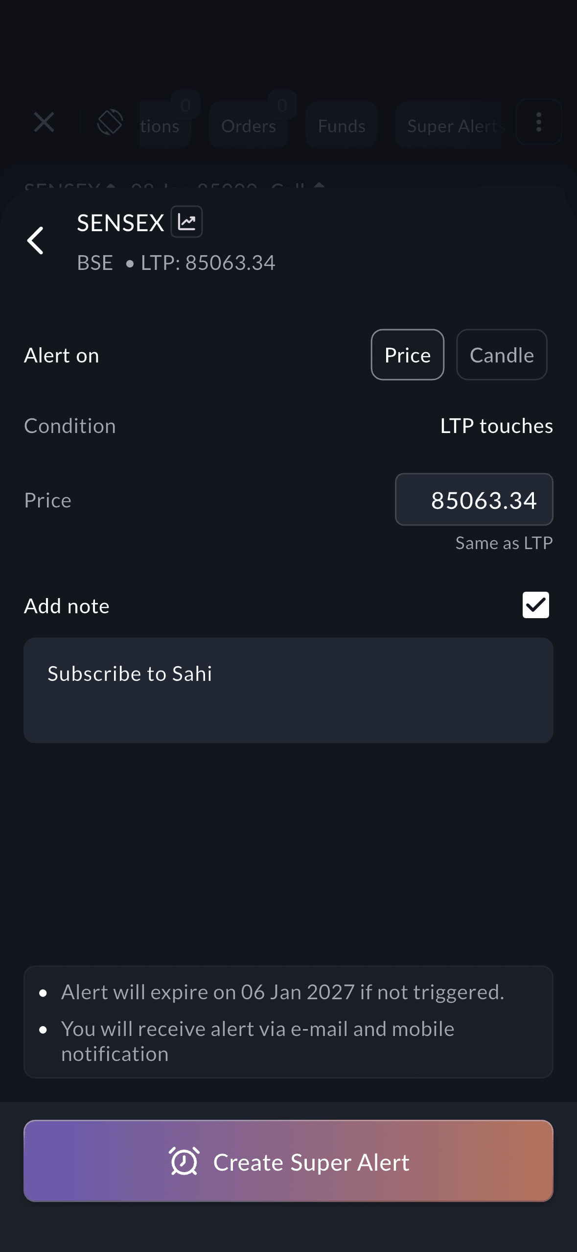 Scalper 2.0 introduces Super Alerts that track your chosen market conditions and notify you the moment your setup appears. You can create alerts based on price levels as well as candle behaviour, so you are called into the market only when your exact trading conditions are met.