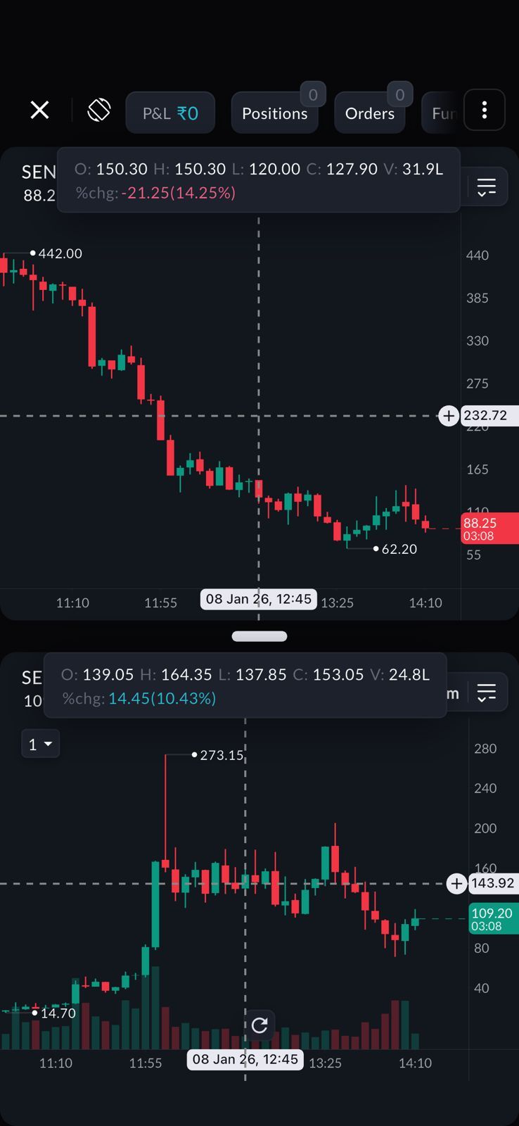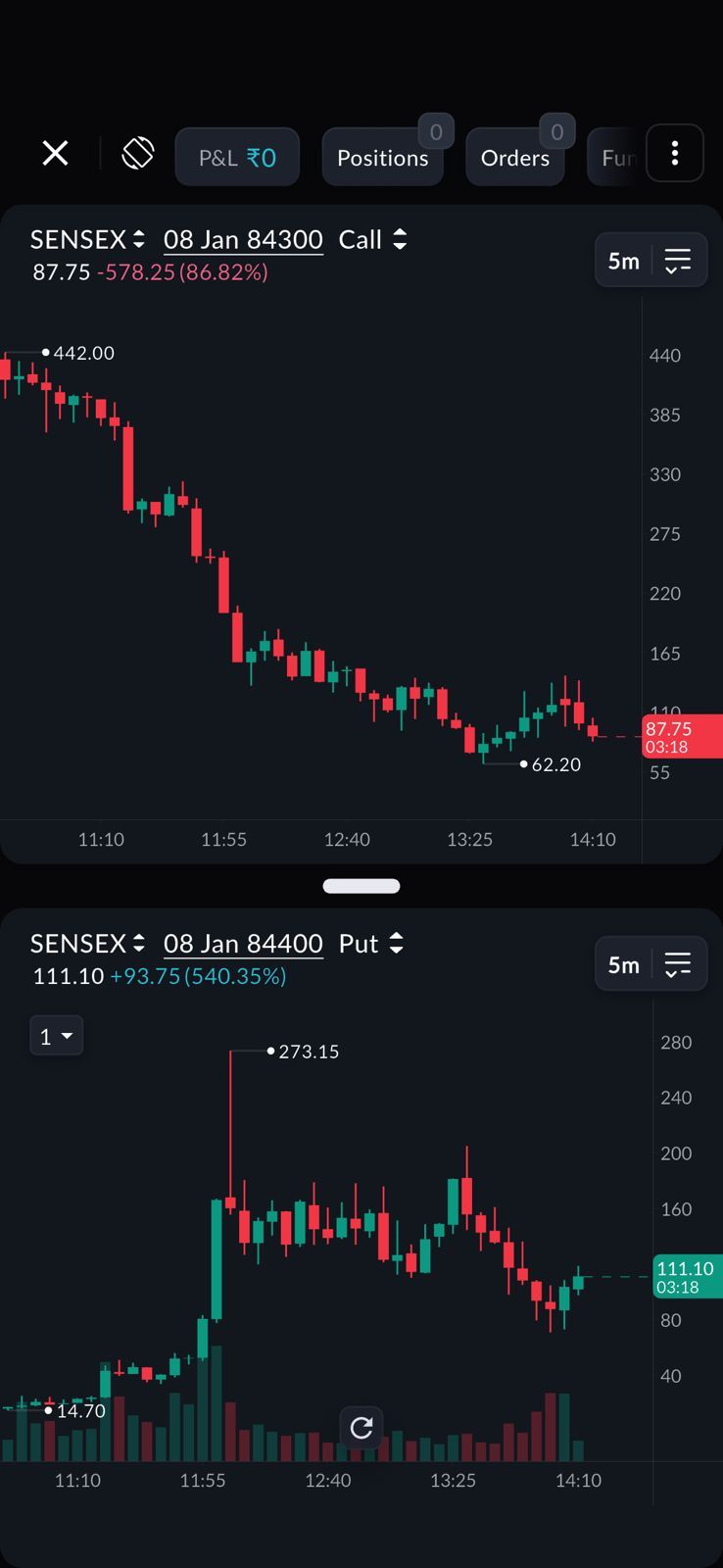 You can now also view Call + Put charts together on your mobile screen giving you an even clearer view of premium behaviour across both legs at the same time.