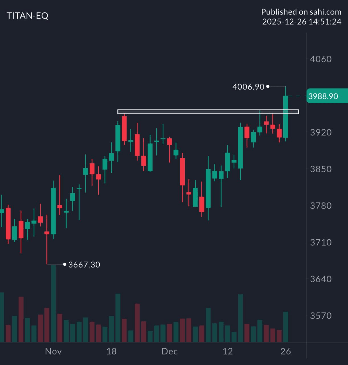 | RVNL | +12.22% | Double bottom breakout supported by railway fare revisions and rising Budget optimism |