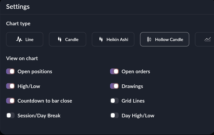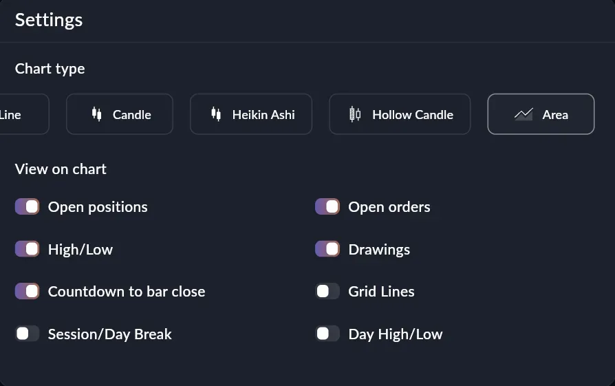 Trading isn’t just about price, it's about seeing the full picture. That’s why we’ve added new chart types and indicators to help you analyse markets with more clarity, context, and precision.
