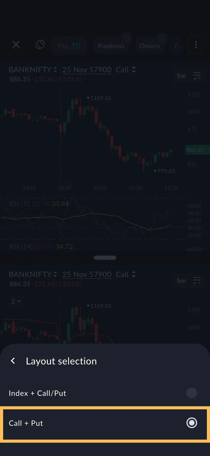 Earlier, you could pair your index chart (like Bank Nifty or Nifty) with either a Call or a Put.