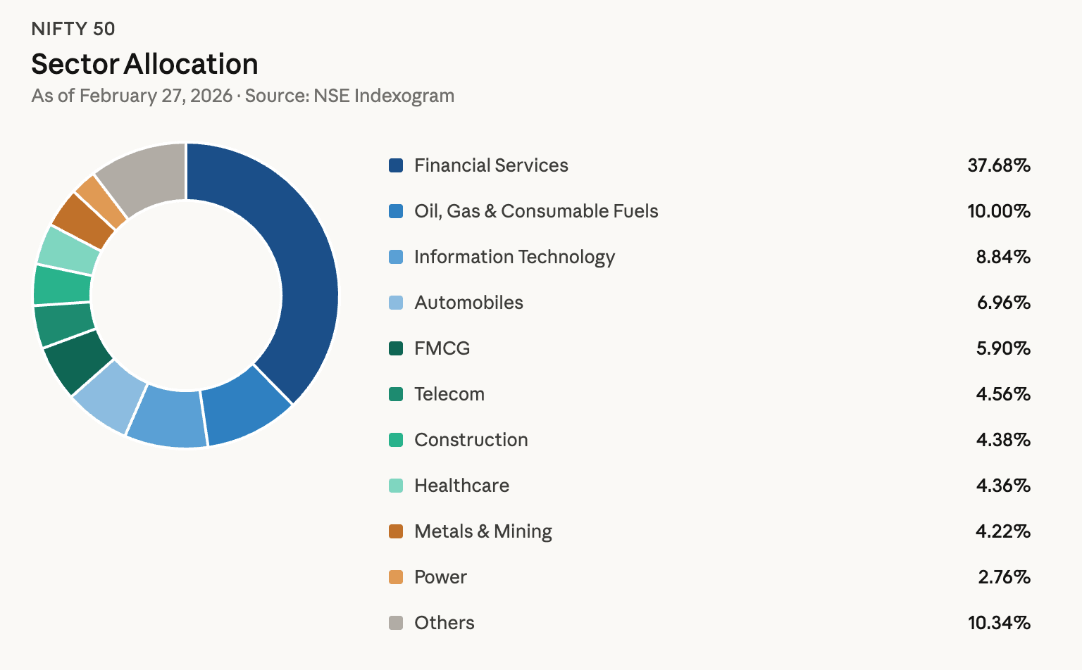 Top 10 Nifty 50 stocks by weight (NSE Indexogram, February 27, 2026):