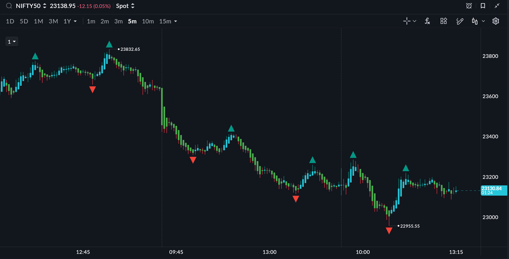 For example, if Nifty forms a fractal high near 24,300 and price later breaks above that level, traders may interpret it as a structural breakout. Similarly, fractal lows can help identify potential support zones where buyers may step in.