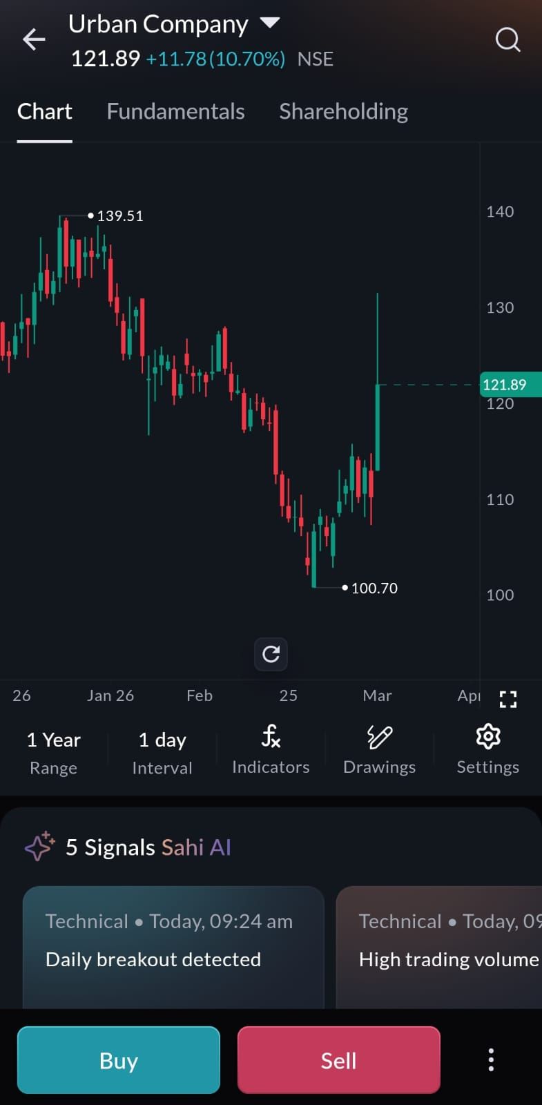 After listing at a sharp premium in September 2025 and briefly touching highs above ₹200, compared to its IPO issue price of ₹103, the stock gradually lost momentum in the following months. Concerns around profitability, continued investments, and investor exits kept pressure on Urban Company's stock, leading to a meaningful correction from its post-listing highs.